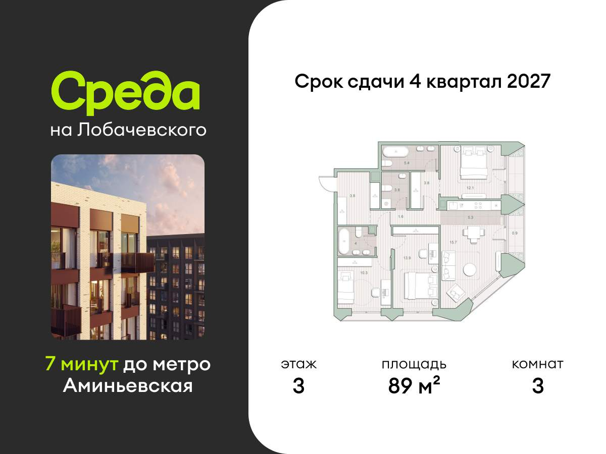 Стадия строительства - монолит готов, высокая стадия готовности, сдача в 2027 году. Проект также подходит под инвестиционные сценарии. Предусмотрена временная регистрация.