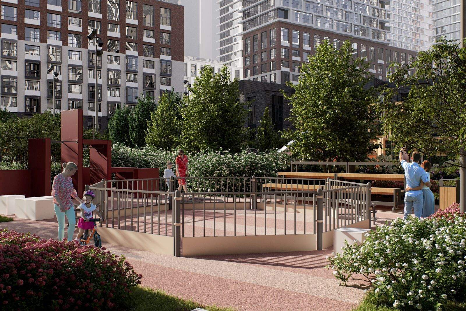 Внутренний двор - настоящее продолжение вашего дома: закрытая охраняемая территория без машин, развивающие детские площадки, воркауты-зоны для тех, кто хочет быть в форме, площади для праздников и посиделок с соседями.