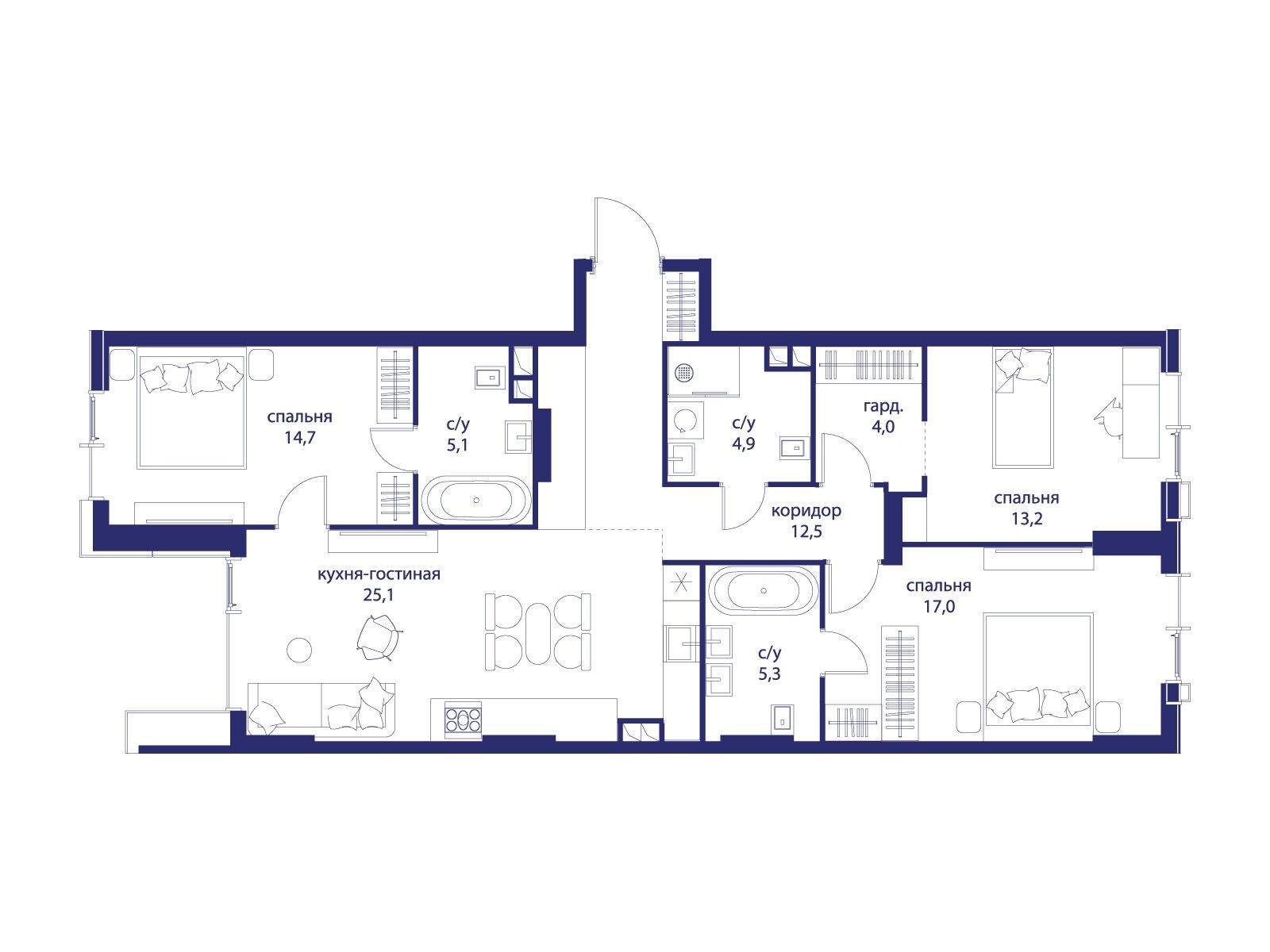 Продам трехкомнатную квартиру в новостройке 101.8 м.кв.
