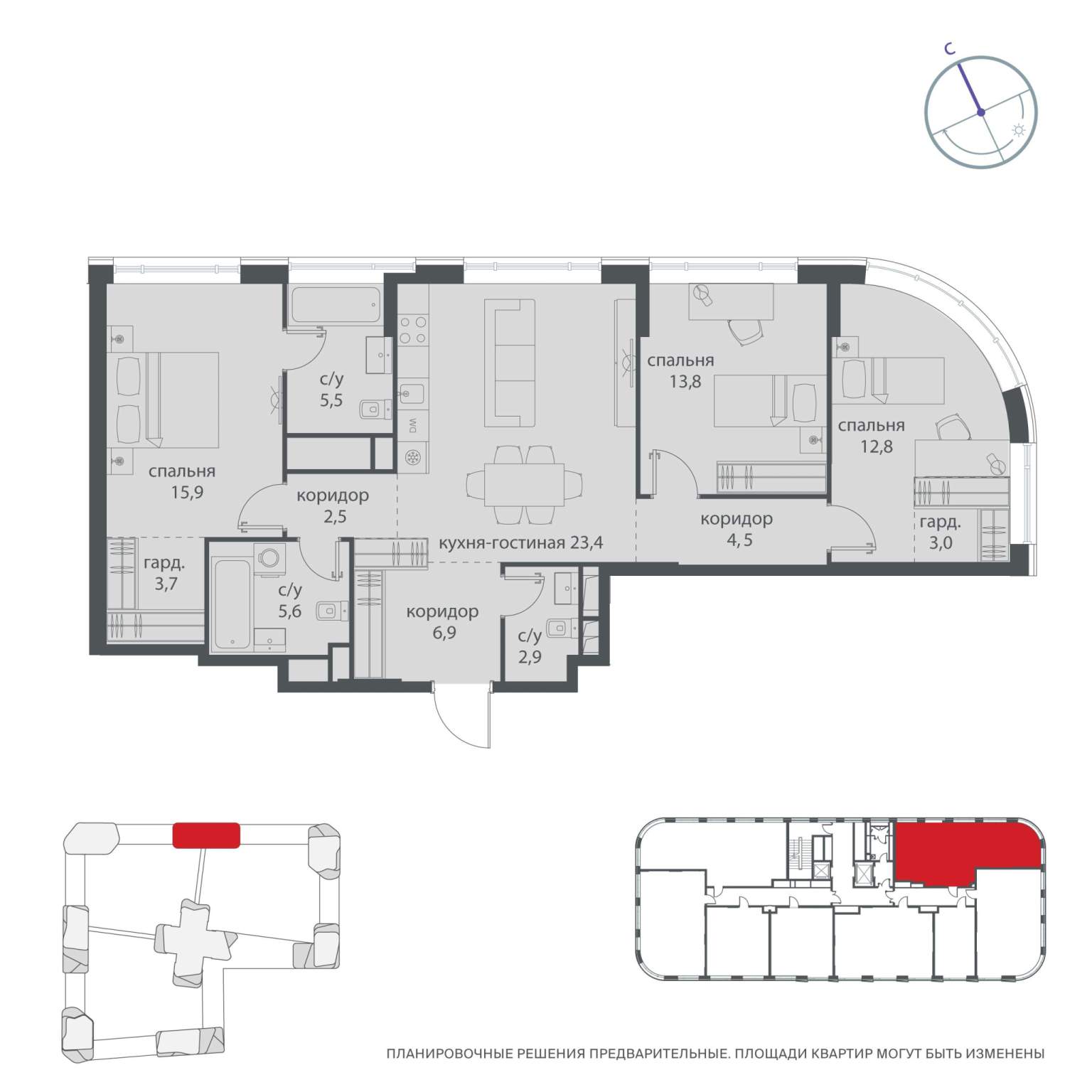 Продам трехкомнатную квартиру в новостройке 113.6 м.кв.