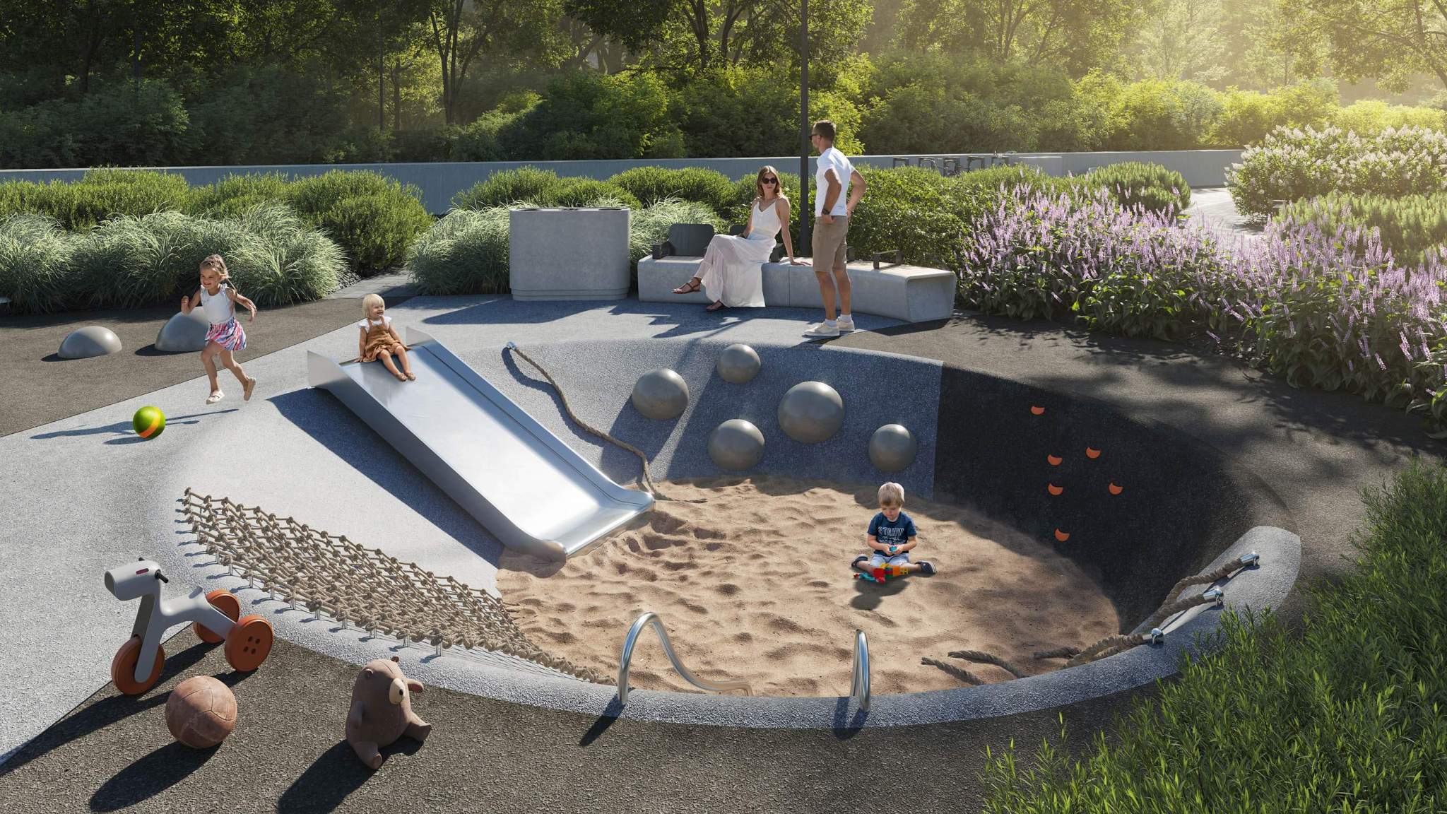 Подземная парковка, парковка охраняется. Обеспечение безопасности: круглосуточная охрана. Инфраструктура: школа, детский сад, поликлиника, детские площадки, спортивные площадки, места для отдыха.