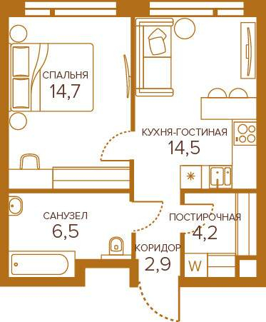 Общая площадь квартиры - 42.8 кв.м. В квартире выполнена премиальная отделка в неоклассическом стиле.