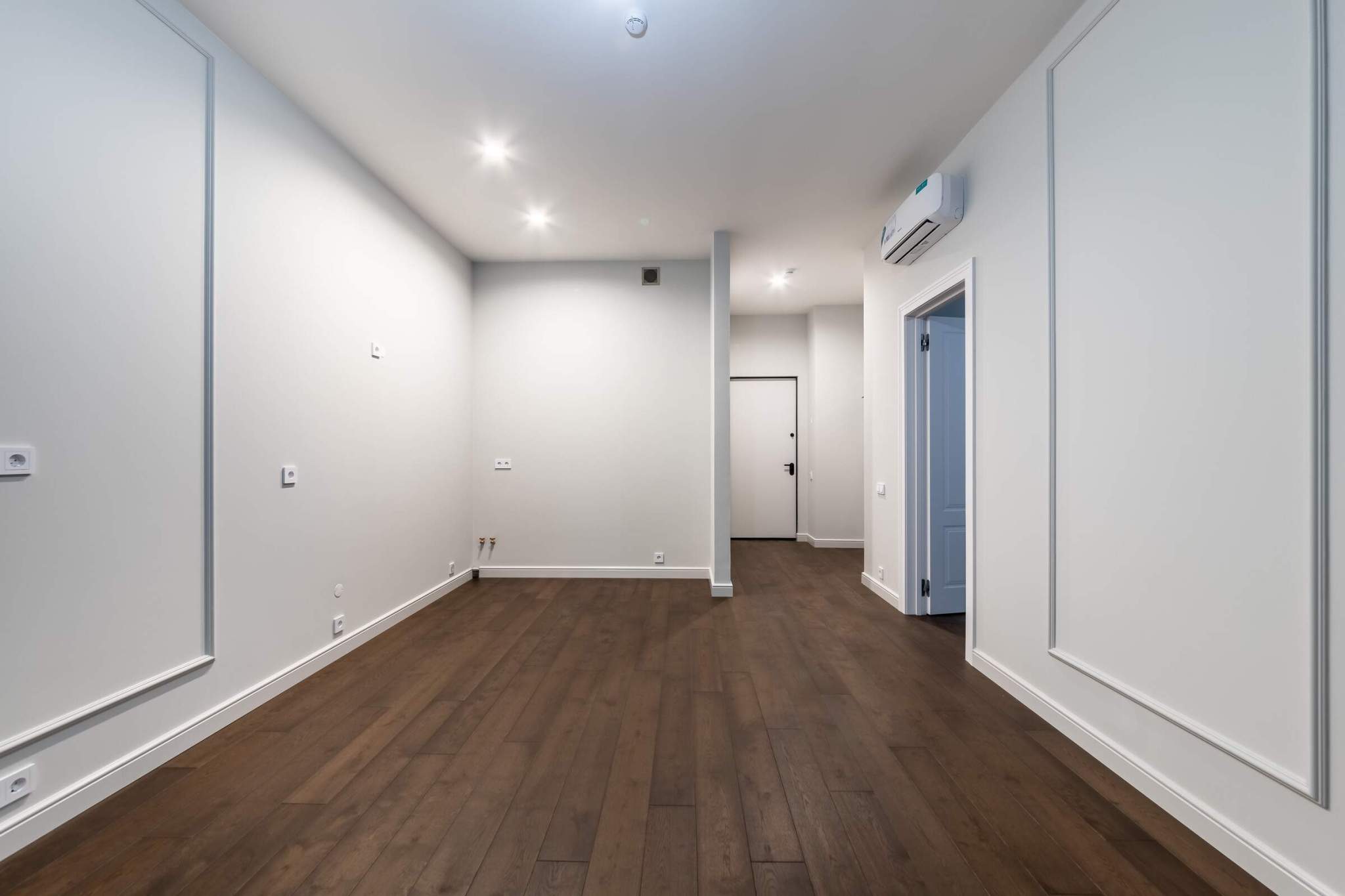 Общая площадь квартиры - 42.8 кв.м. В квартире выполнена премиальная отделка в неоклассическом стиле.