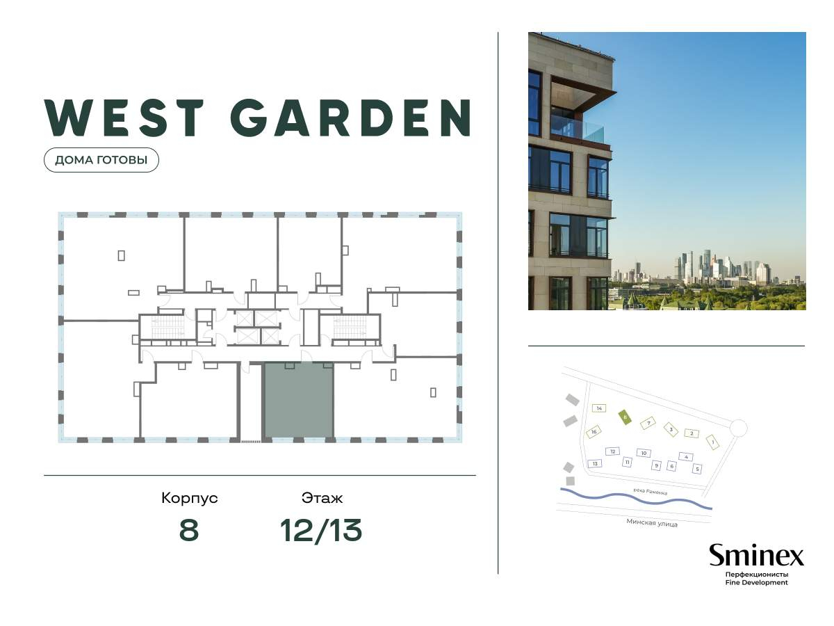 West Garden - это собрание клубных домов высотой 12-14 этажей в собственном парке 16 гектаров вдоль реки. Просторный среднеэтажный квартал расположен на Минской улице, в респектабельном Западном округе столицы. Вокруг премиальное окружение и более 1000 гектаров парков.