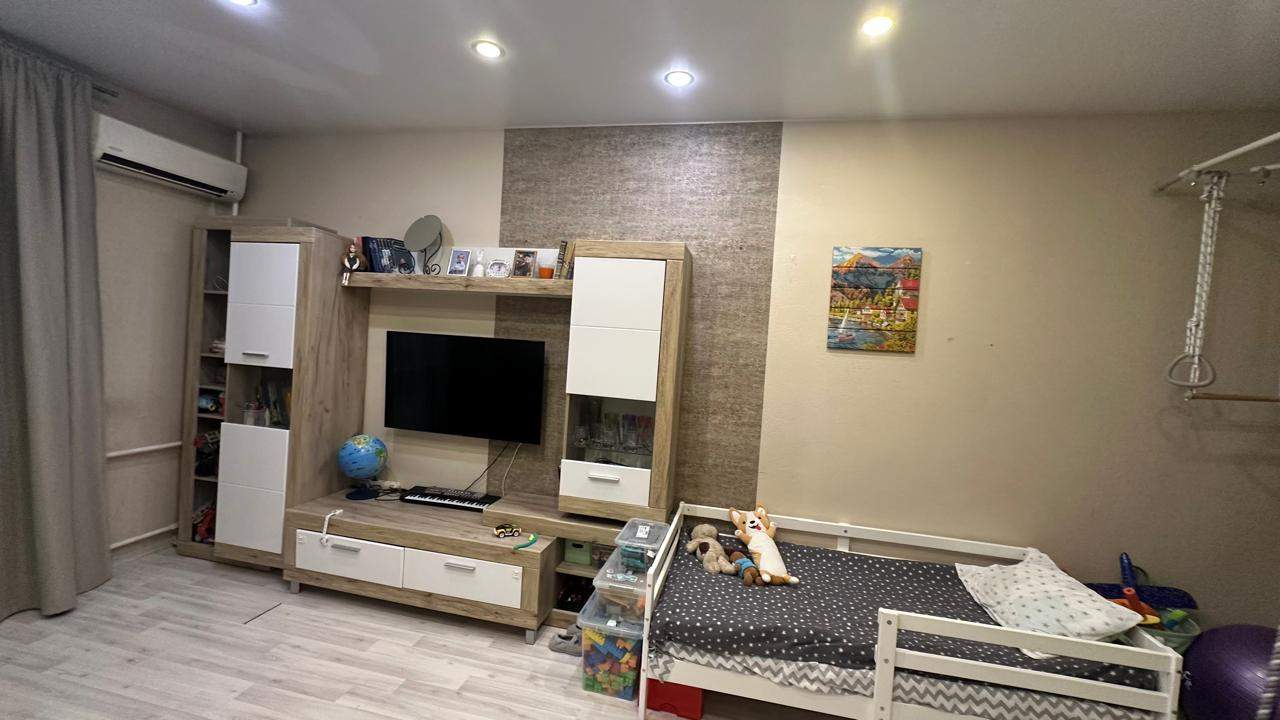 Жилая площадь составляет комфортные 20 квадратных метров, а кухня занимает 10 квадратных метров, предоставляя достаточно места для кулинарного творчества и семейных ужинов. Встроенная кухня и шкаф-купе в комнате входят в стоимость квартиры. В Квартире отличная аура, создающим атмосферу тепла и уюта, а также раздельный санузл для дополнительного удобства, имеется кондиционер.