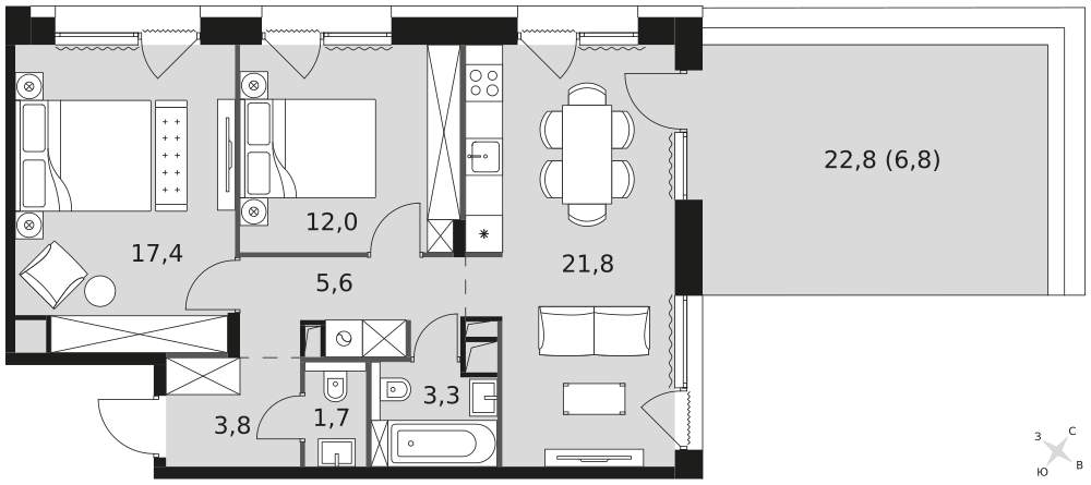 Квартира располагается на 13 этаже 17-этажного монолитного дома, высота потолков 3.17 м.
