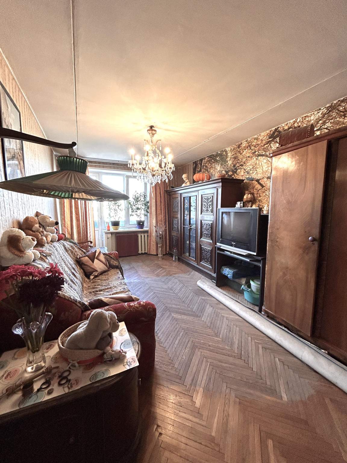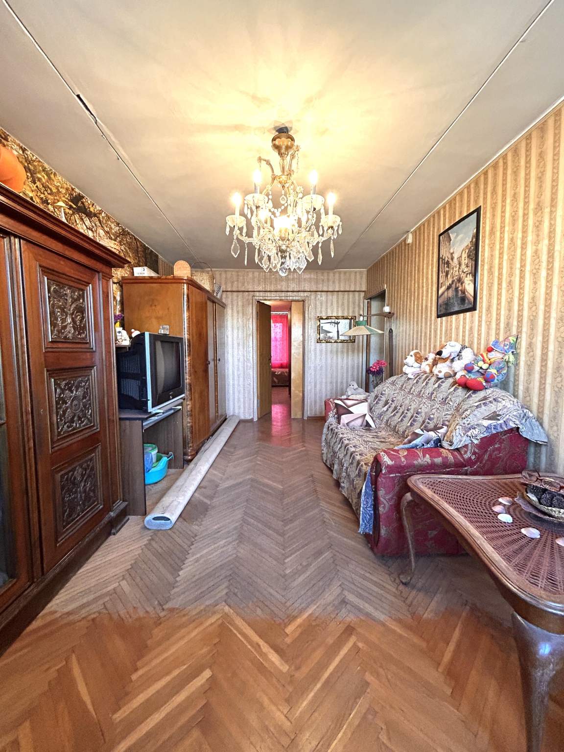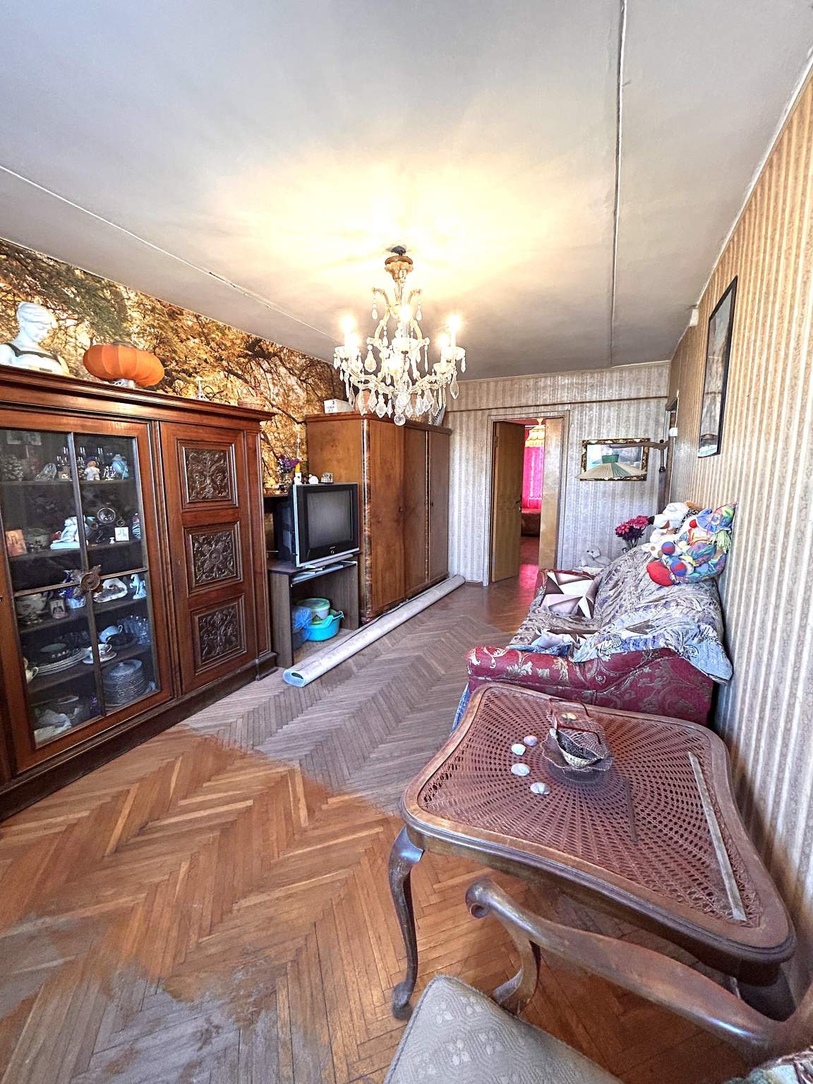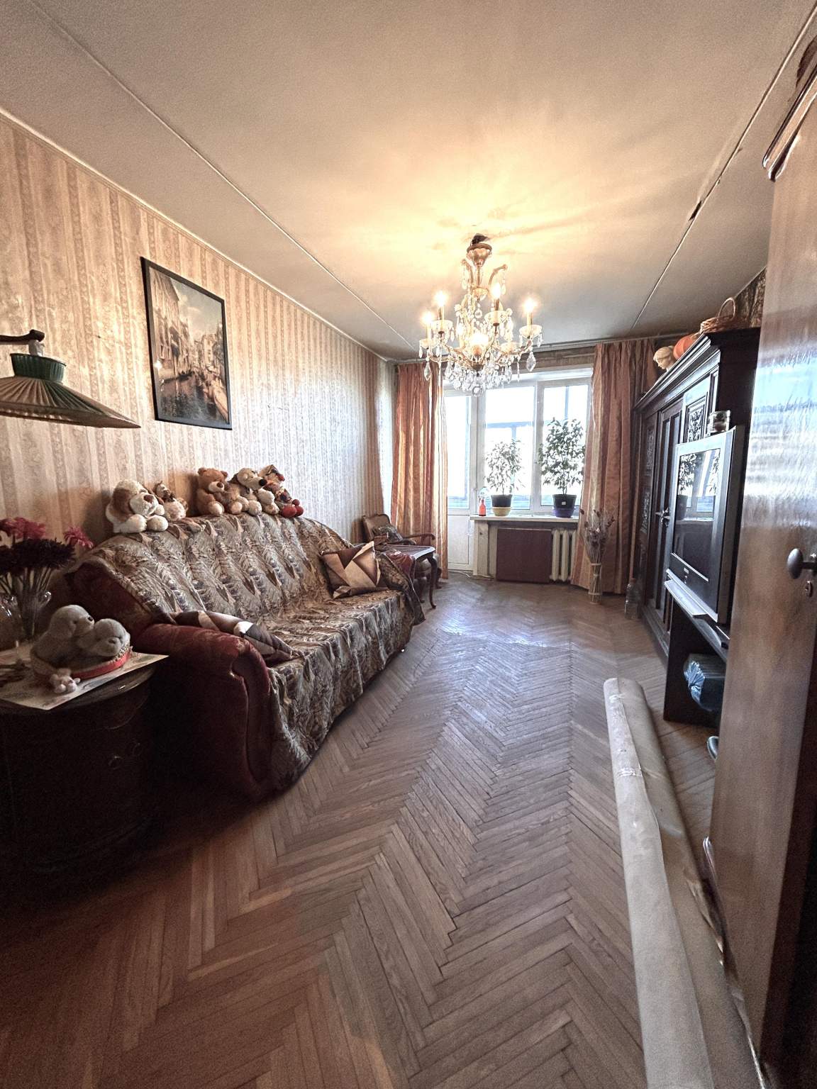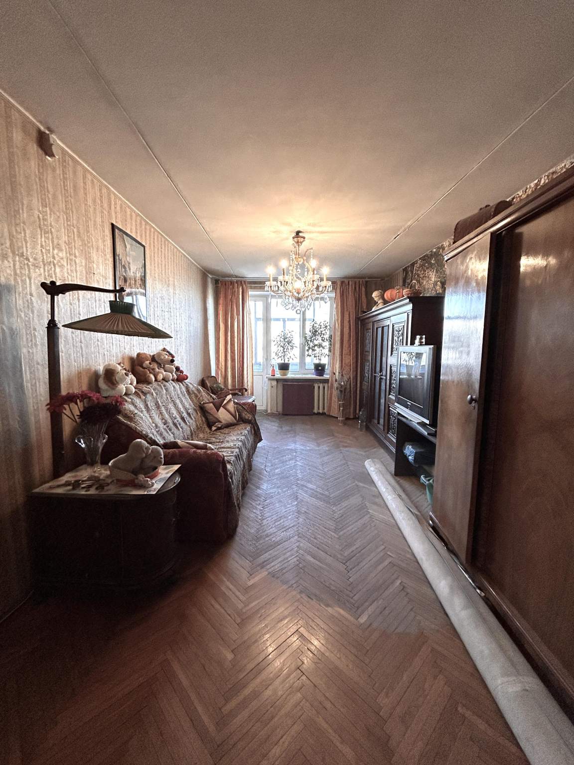 жилая 40,4 кв.м. (13,6+17,4+9,4), кухня 5,5 кв.м. Состояние квартиры среднее, требуется косметический