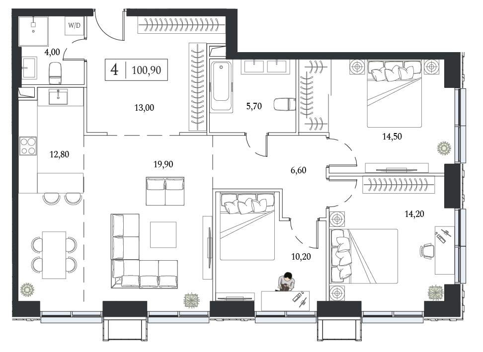Продам трехкомнатную квартиру 100.9 м.кв.